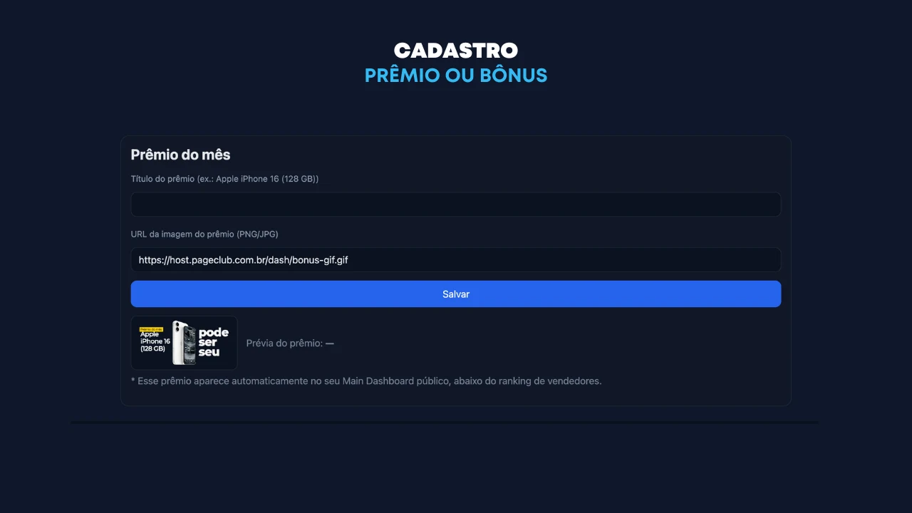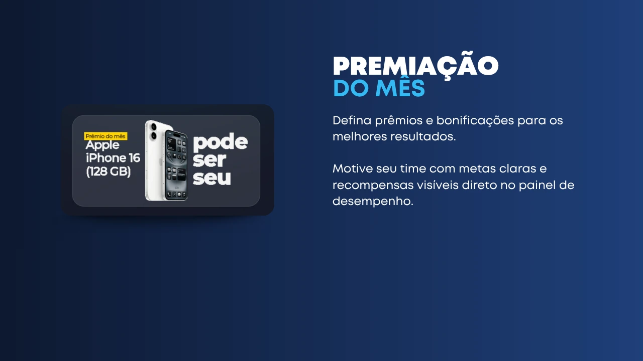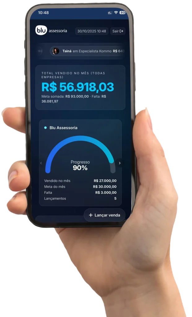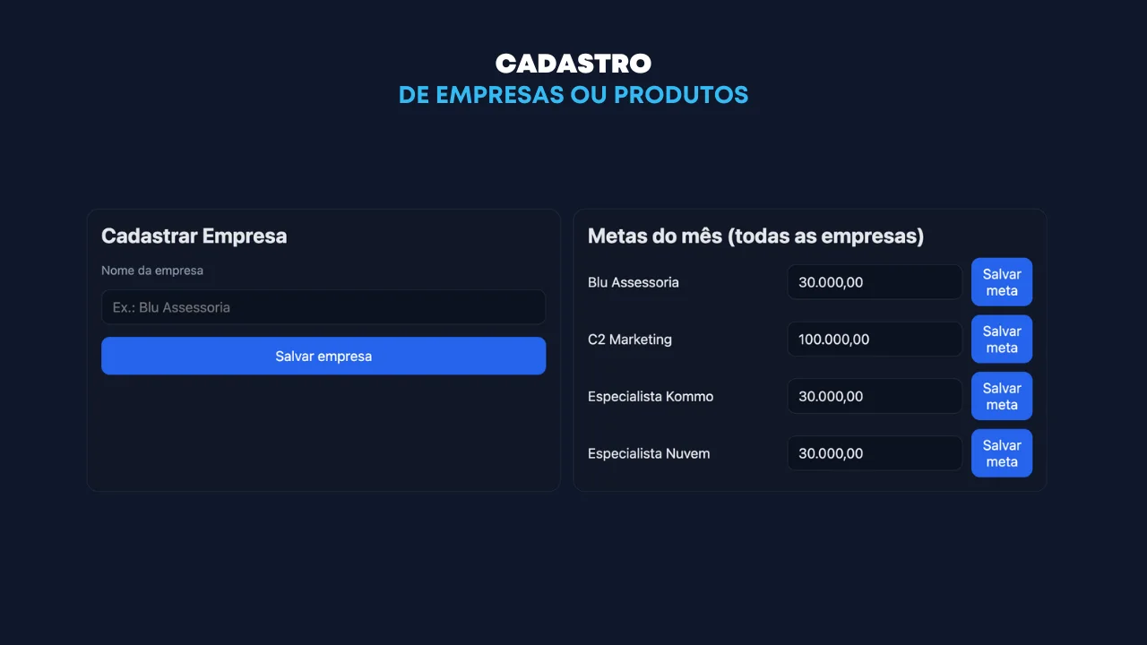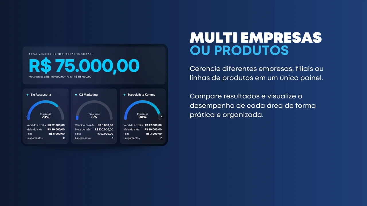 Defina metas de vendas por vendedor ou por equipe e acompanhe o desempenho.
