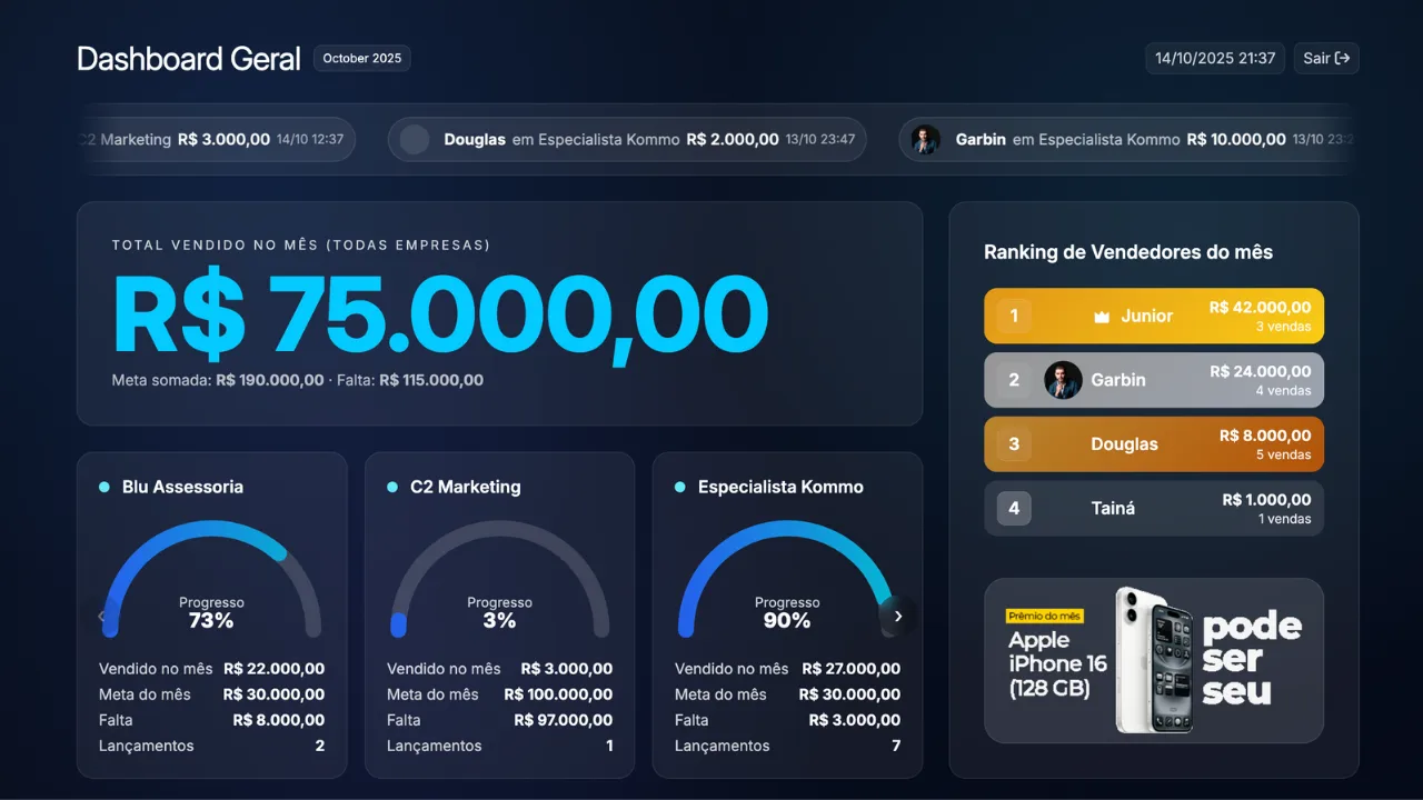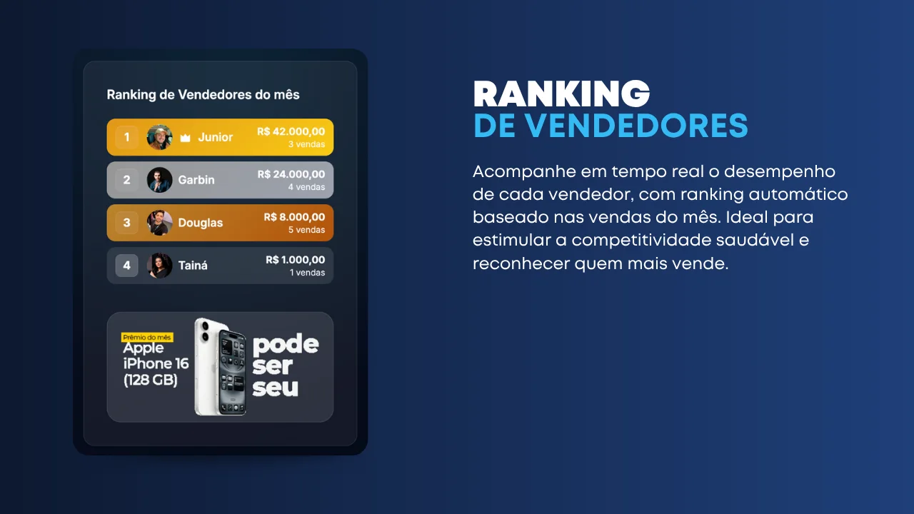Veja em tempo real quem está vendendo mais, com atualização Instantânea.